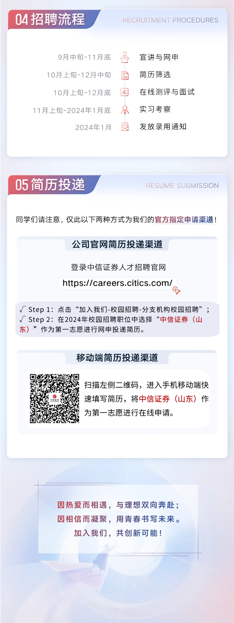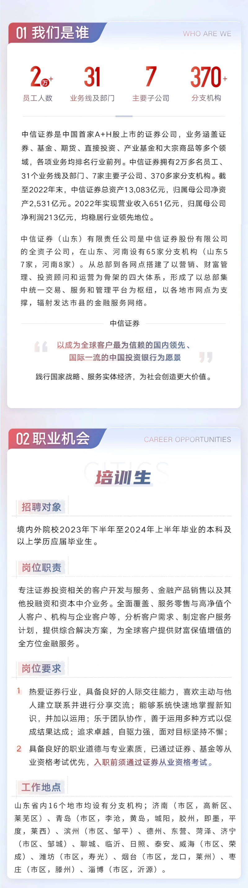 工作地点: 济南青岛淄博枣庄东营烟台潍坊济宁泰安威海日照德州聊城滨州菏泽其它 报名方式:https://careers.citics.com/