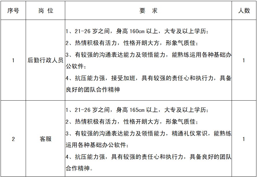 一、招聘职位及要求